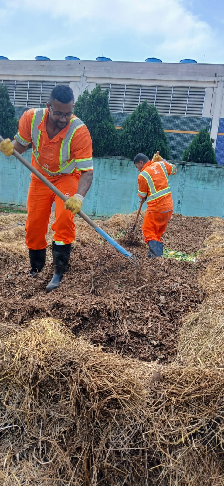 Operação de Pátio de Compostagem com o processamento diário/médio de 10 Toneladas de Frutas, Legumes e Verduras das Feiras-Livres, em conjunto com palhas de granados, resíduos de podas e jardinagens.